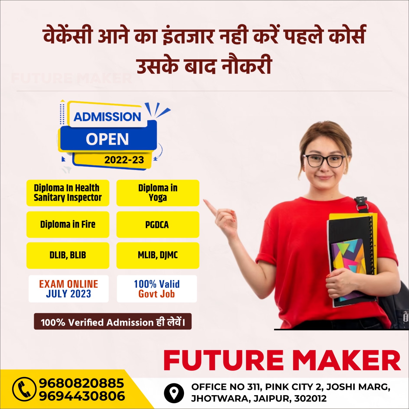 Futuremaker is a premier private education and career guidance institution dedicated to helping students secure admission into top private colleges and universities across India. Based in Jaipur, Rajasthan, we specialize in undergraduate and postgraduate admissions.